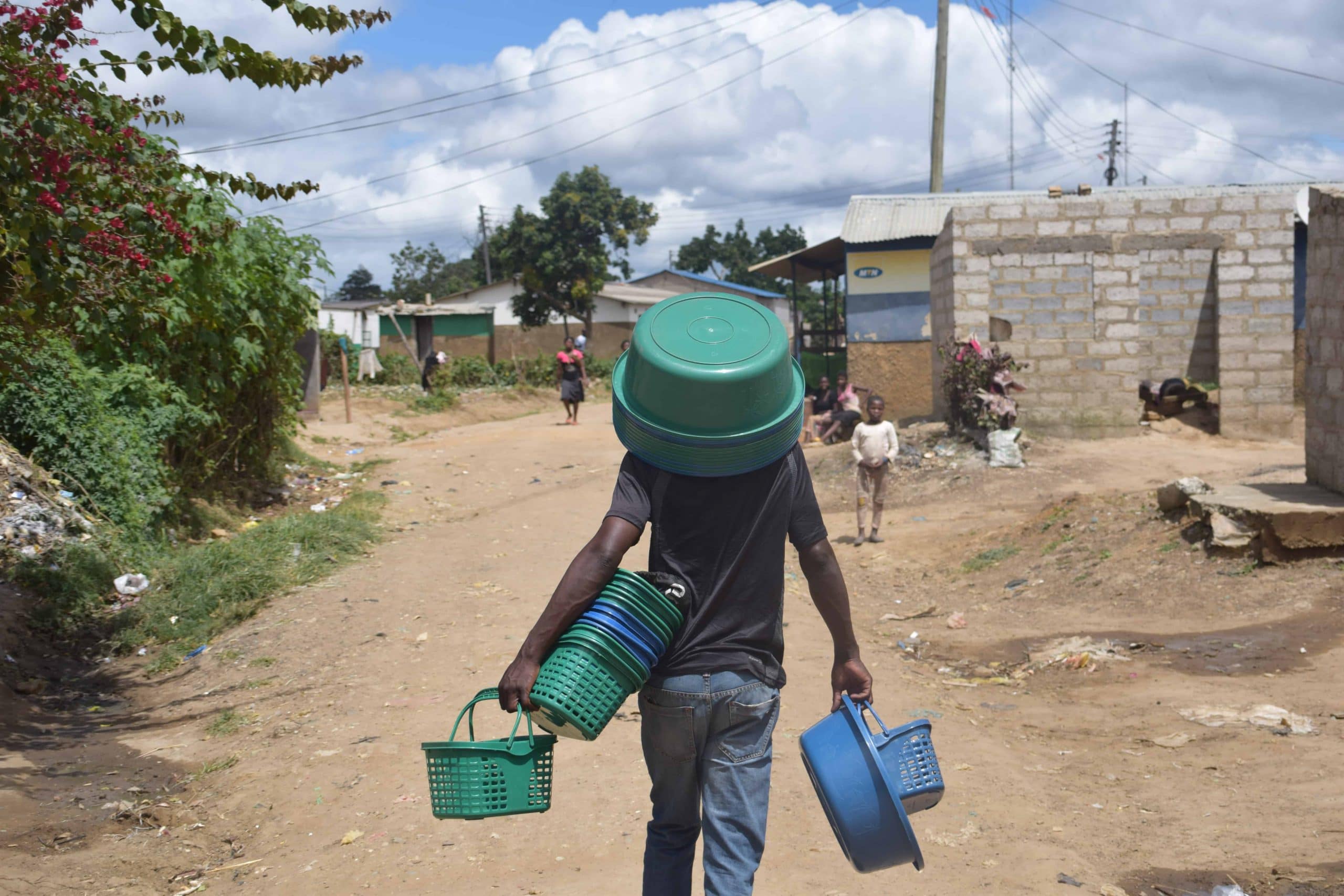 Deretter ble det en såkalt communitywalk, en fottur hvor Skjeberg-elevene fikk se hvordan vanlige mennesker bor i Zambia. Sterkt og spennende på en gang.