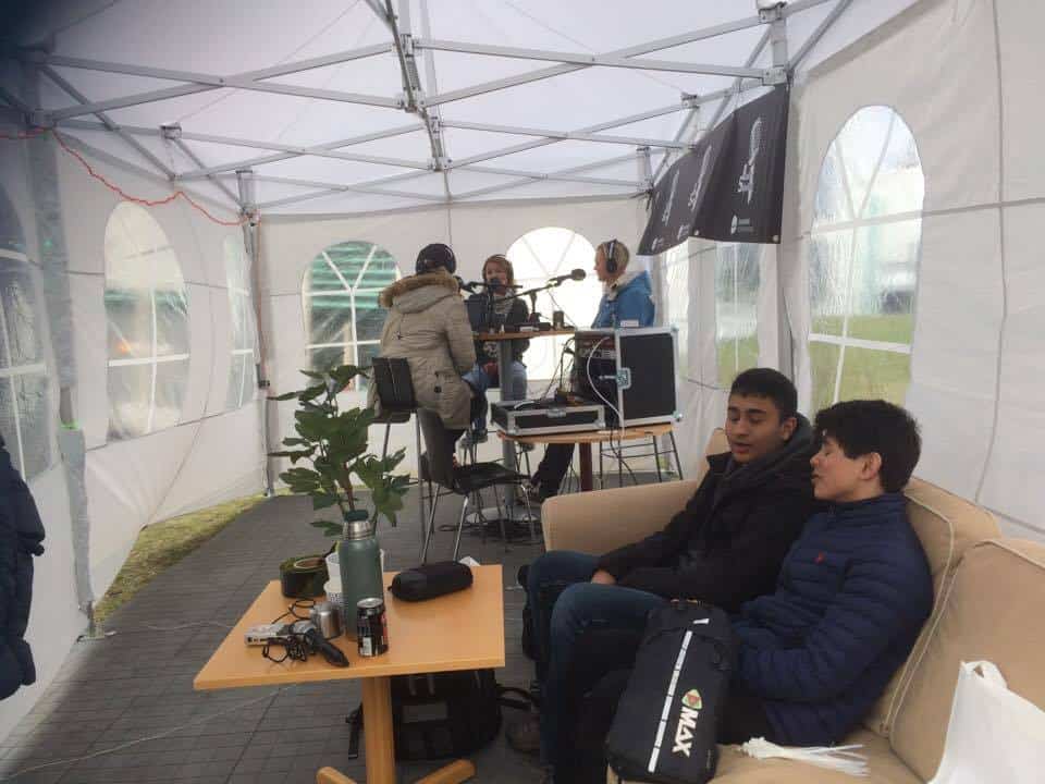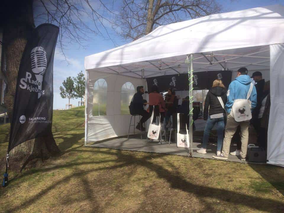 Vi var på plass i Lykkebergparken andre dag av festivalen. Denne dagen brukte vi på å bygge opp det mobile radiostudioet vårt. Teltet ble fort proppet av mennesker, og festivallivet var i gang for fullt. Første utfordring var å planlegge en sending på en halvtime uten noe spesielt å gå ut ifra. Sendingen var spekket av intervjuer av forskjellige publikummere, artister og bidragsytere til festivalen.